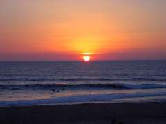 Normale terrestrische Refraktion: Bereits bei normaler Temperaturverteilung werden die Lichtstrahlen, die von Objekten auf der Erdoberfläche ausgehen, konkav zur Erdoberfläche gekrümmt. Der Grund dafür ist, dass in den höheren Luftschichten wegen der höheren Temperaturen geringere Luftdichten mit geringerer Strahlenbrechung vorliegen. So ein Phänomen kann man zum Beispiel bei einem Sonnenuntergang beobachten: